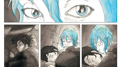 I m’interesso per saber si la història està basada en una obra literària. Sí! Està inspirada en l’obra de Julie Maroh: Le bleu est une couleur chaude, publicada el 2010. Primera sorpresa, és una novel·la gràfica. Segona sorpresa, ha rebut ja 3 premis. La tercera ha sigut tenir el llibre entre les mans i devorar-lo.