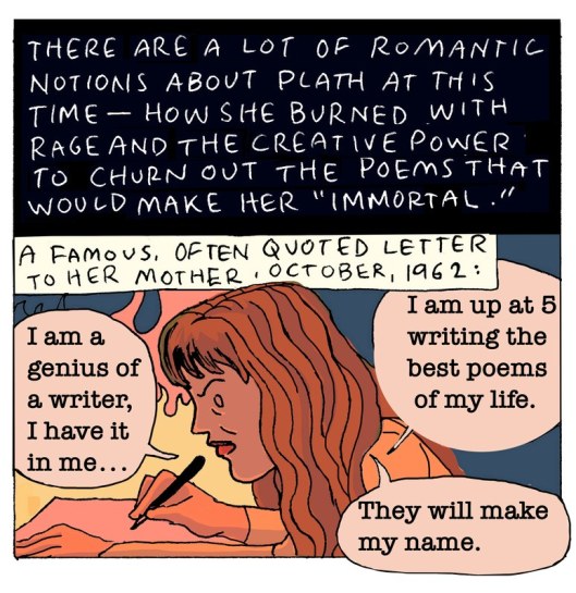 Les vinyetes que acompanyen el text formen part de l’obra gràfica breu de Summer Pierre pel New Yorker. Pierre llegeix les cartes de Sylvia Plath i mostra una profunda comprensió. Una mirada interessant a la mítica vida de la poeta, des de moments relativament feliços, fins a la setmana anterior al suïcidi. És un retrat reflexiu d’una vida complicada que l’estil de la il·lustradora perfila amb encert.